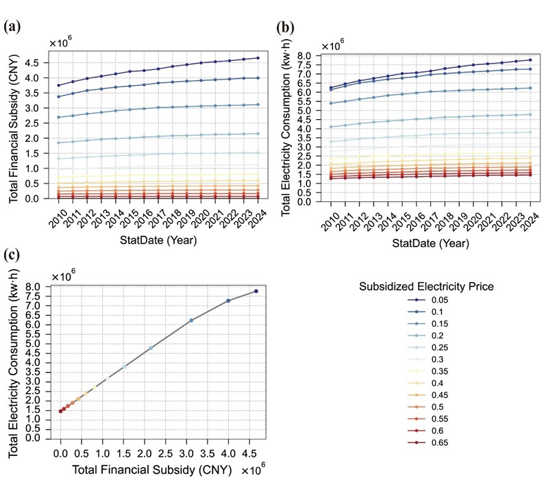 - F2E program shows a significant increase in electricity consumption and policy costs is observed when the subsidized electricity price drops below 0.3 CNY/kWh.